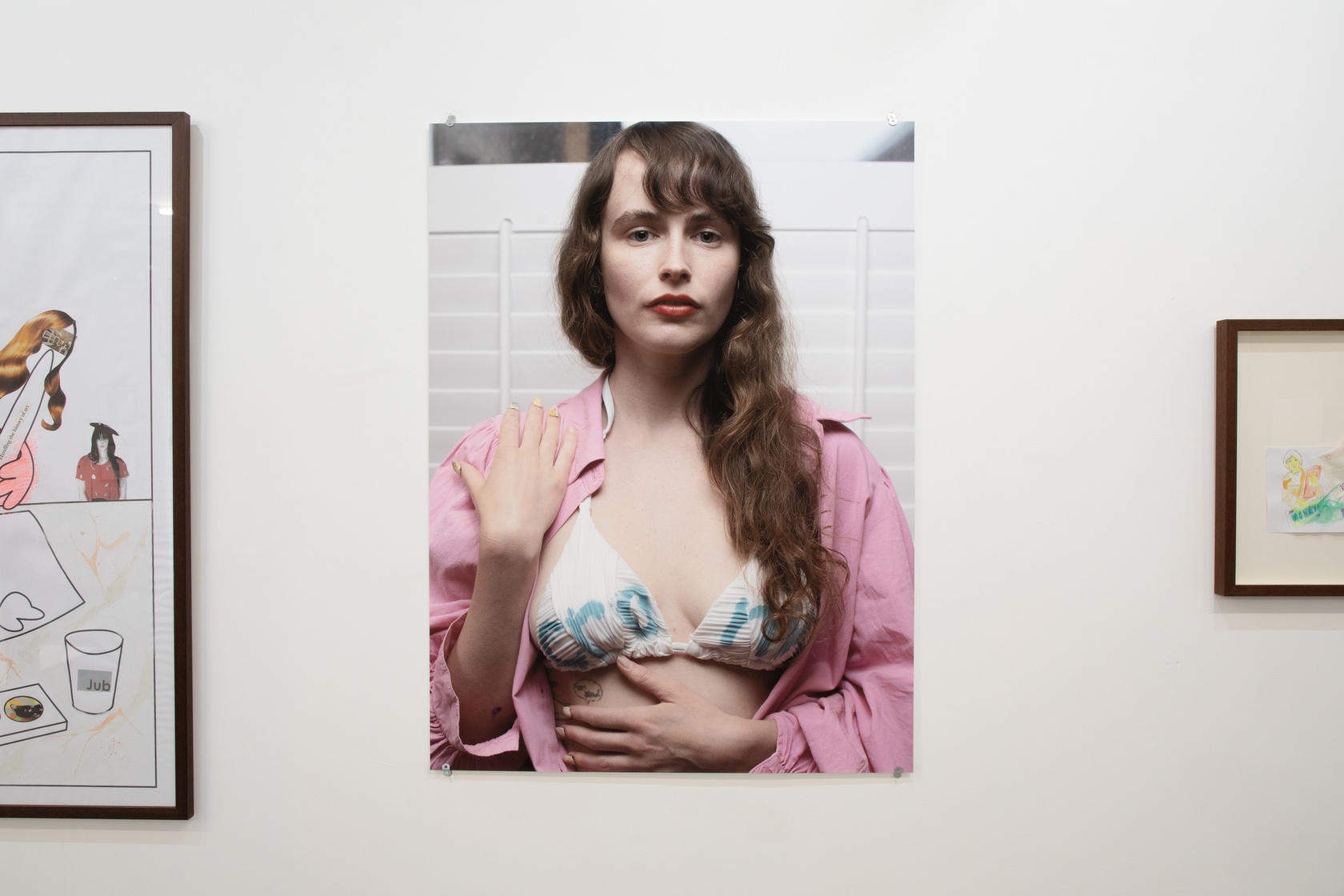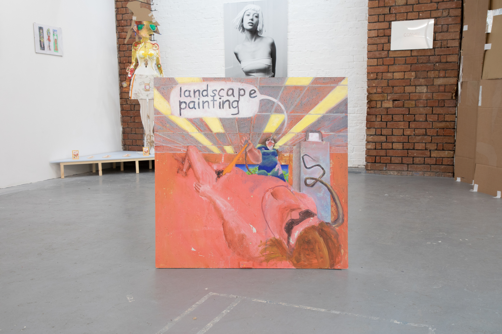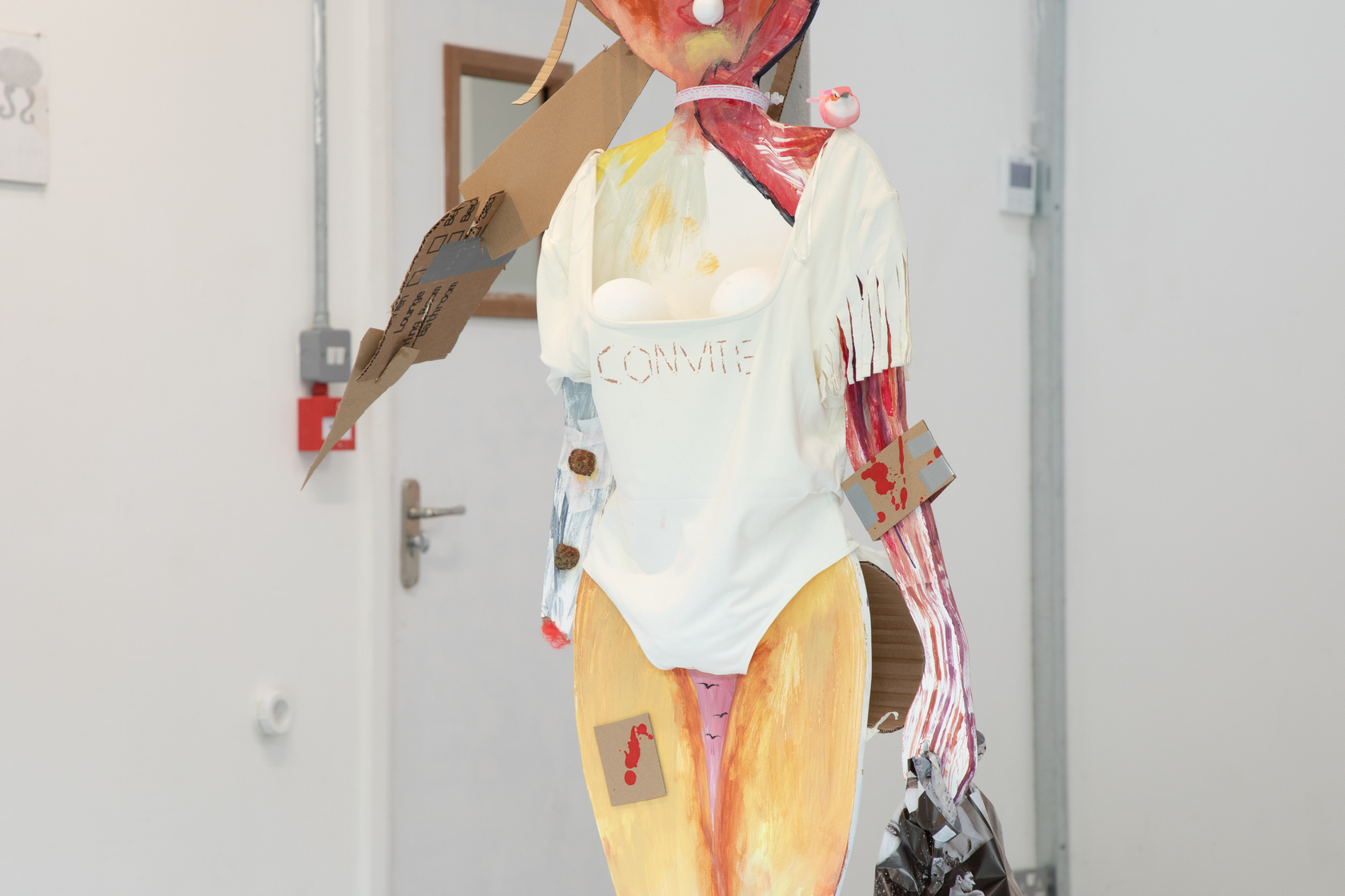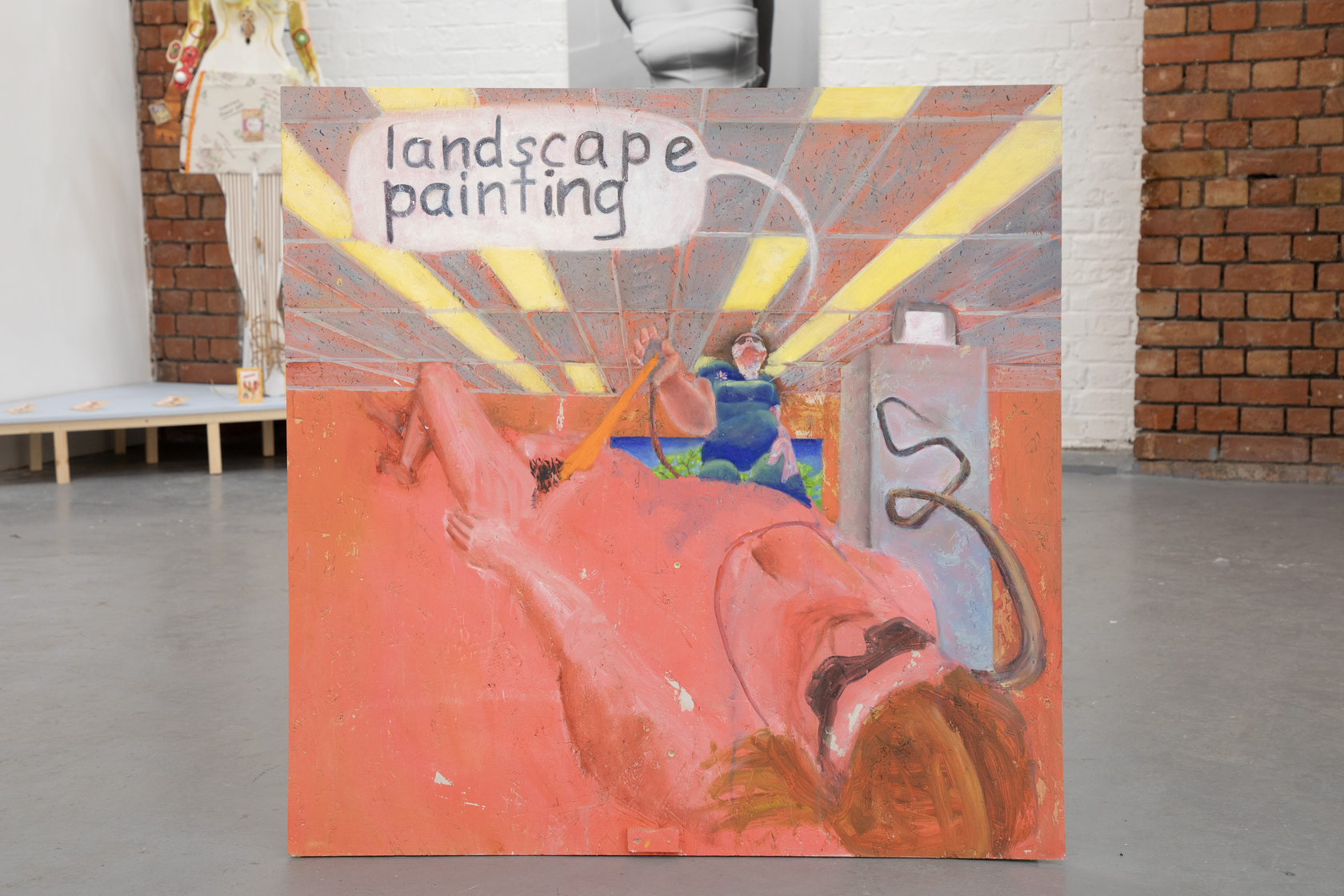 An artist must be media literate and archaic, esoteric but professional. Lap Dance is duplicitous: imitating the sanitised object while investigating the unsafe. You are invited by Convite (2025). On closer inspection, the small, reclined purple and pink figures who form the letters of your invitation are clothed in a neon Zara jumpsuit.