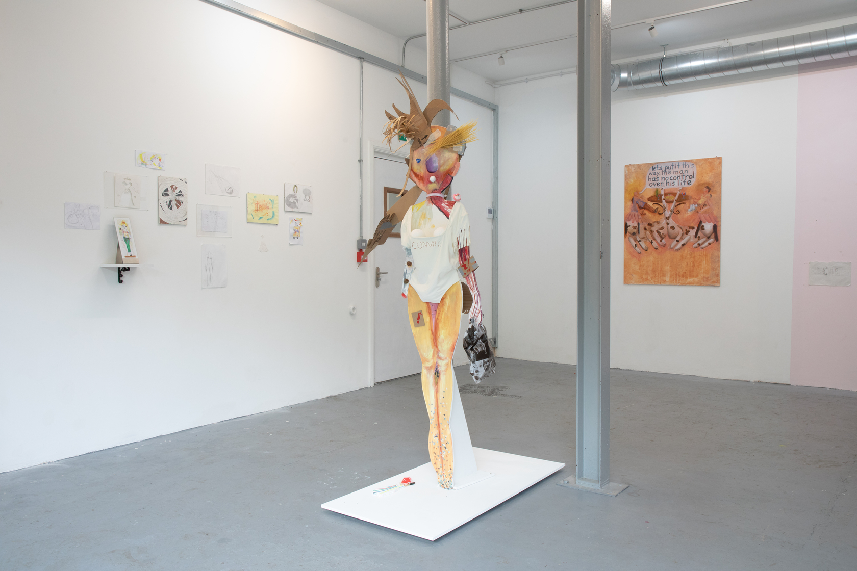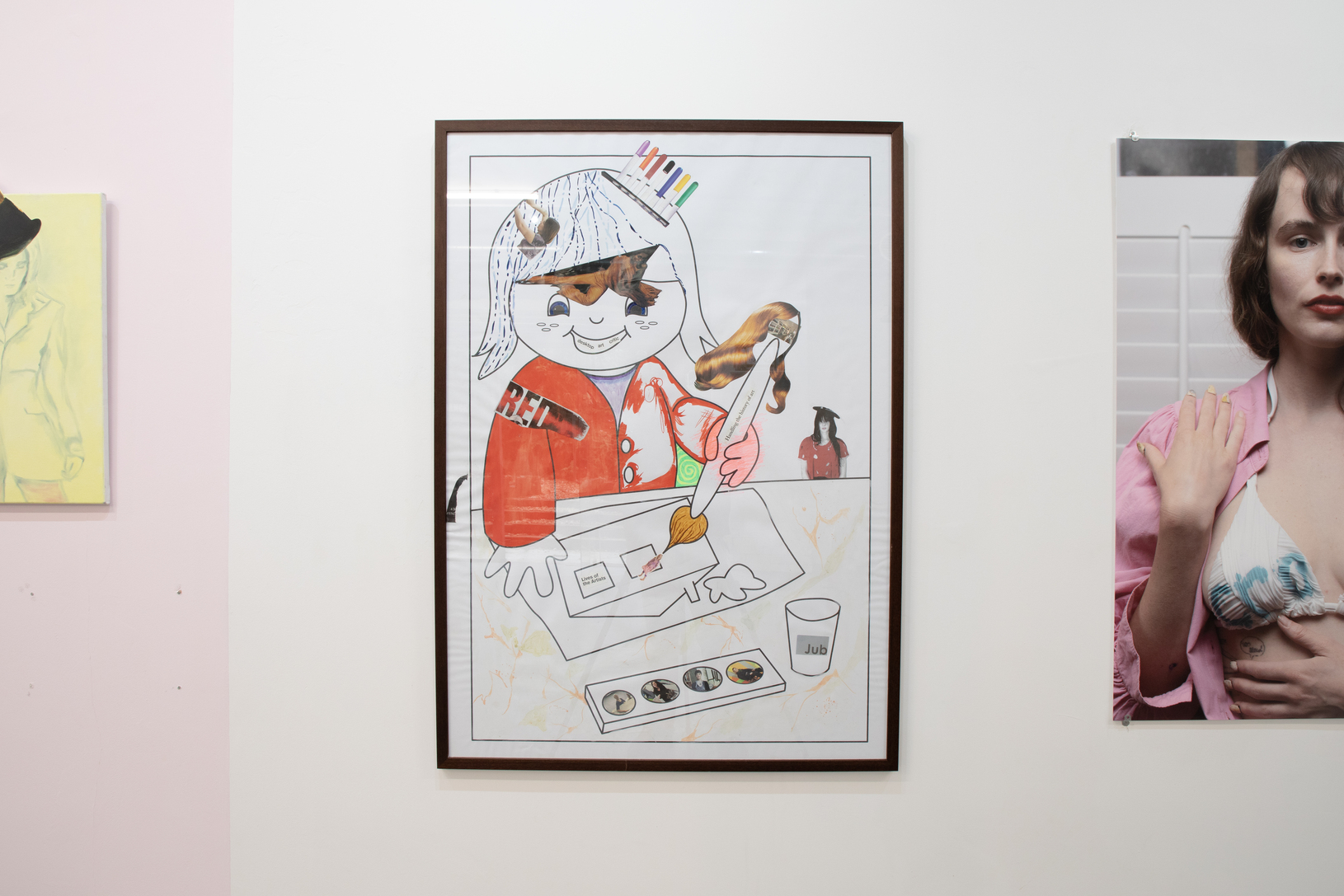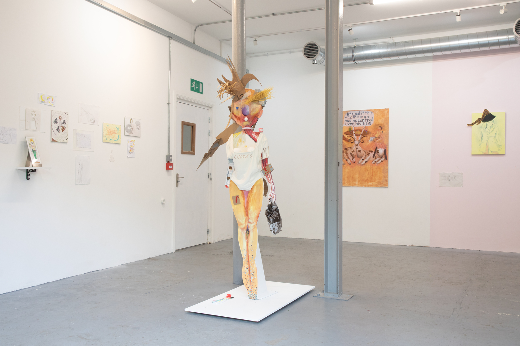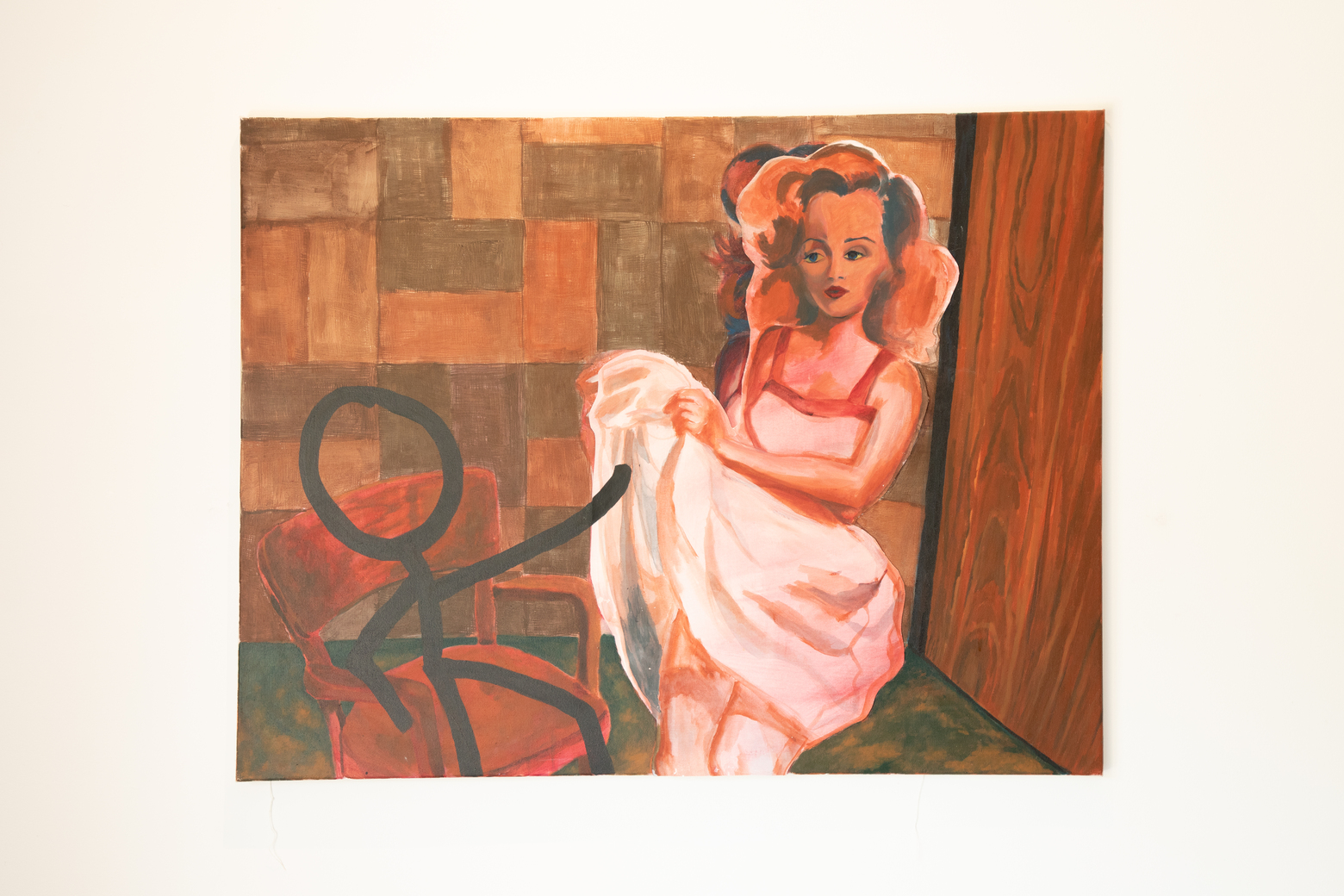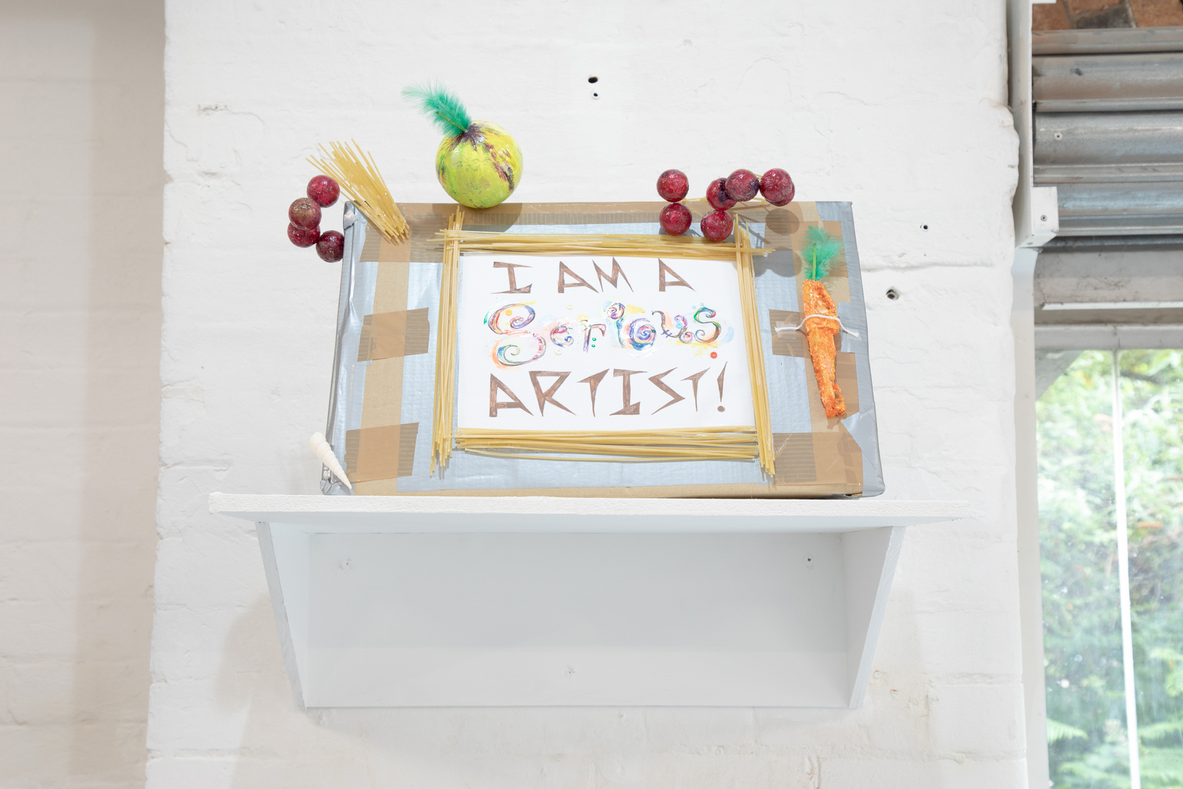 An artist must be media literate and archaic, esoteric but professional. Lap Dance is duplicitous: imitating the sanitised object while investigating the unsafe. You are invited by Convite (2025). On closer inspection, the small, reclined purple and pink figures who form the letters of your invitation are clothed in a neon Zara jumpsuit.