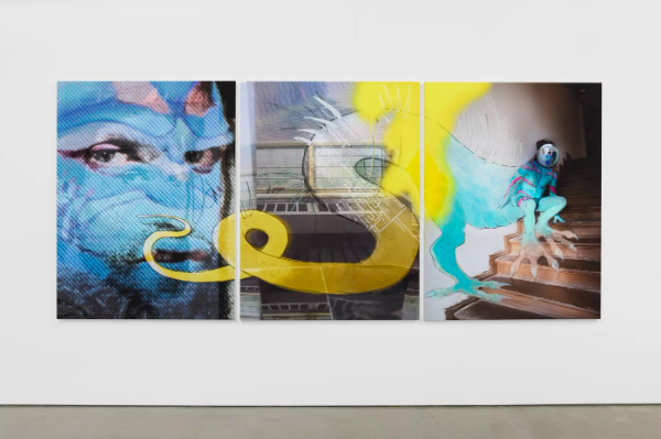 A solo show at Jeffrey Deitch’s Los Angeles space, “A Bug’s Life,” debuts a new series of Shilling’s works. The artist cites inspiration from animal totems in the traditional mythology of Yoruba culture, combined with an aesthetic influence from the stationery brand Lisa Frank. Works like Snelly Boop (2019) are animistic, grotesque explorations of this ultra-positive commodified reverie.